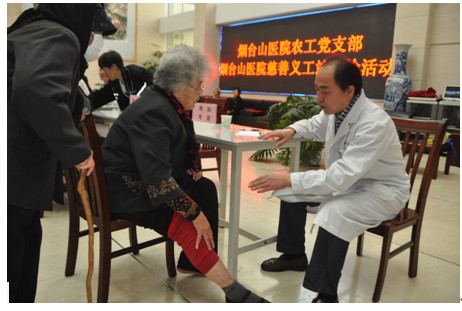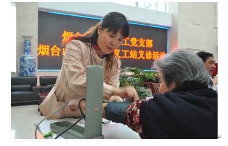 11月1日,烟台山医院农工党支部组织党员来到烟台市老年公寓进行大型公益义诊活动。在主委张恩宁副院长的带领下,党员刘建辉、王东明、杨志勇、赵学福、王英杰、于凤霞、王秀环和曲昌华一行九人一早就来到老年公寓2号行政楼,为100多位老人进行了义诊和健康教育。