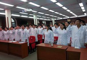 11月11日至23日,医院对2013届新员工进行了岗前培训。人事科、医务科、护理部精心组织,139名新职工参与,是我院2006年开展岗前培训工作以来人数最多一次。人事科张渝宁作为班主任作了培训总结发言。神经内科梁辉主任和评审办孙常磊副护士长分别带领新员工宣读了医生、护士入职誓词。