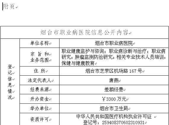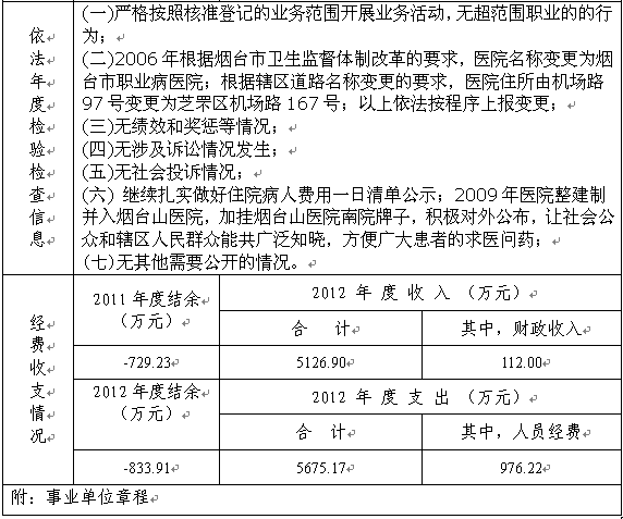 职业病医院事业单位登记管理信息公开备案书