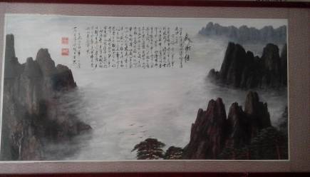 这不是一般的感谢信,而是老人在一幅精心绘画的山水画中用毛笔书写而成。画面上云海茫茫,高山耸立,松树郁郁葱葱,雄鹰展翅翱翔。它象征着病人与疾病做斗争的不屈决心和毅力,也展望着美好的未来。
