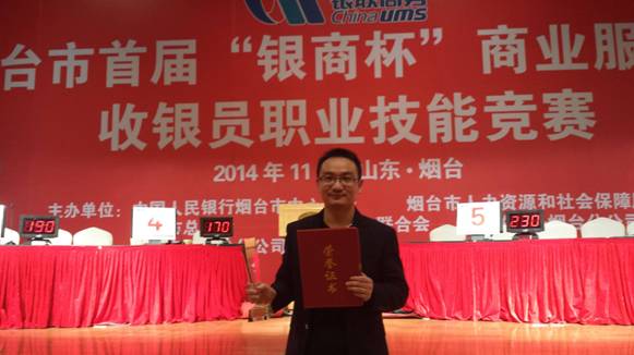 烟台市首届“银商杯”商业服务业收银员职业技能竞赛于11月21日在东山宾馆落下帷幕,我院财务科派出两支代表队共计六人参赛,我院收费员李冬过关斩将,荣膺个人比赛第一名,医院获得团体总分第四名的好成绩,并荣获“优秀商户奖”的荣誉称号。