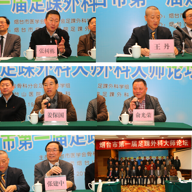 2014年12月19日,由烟台市医学会骨科学分会足踝外科学组主办、我院足踝外科承办的“烟台市第一 届足踝外科大师论坛”在金海湾银都报告厅成功举办。姜保国教授、俞光荣教授、张建中教授及我院王丹、王振海、曲文庆三位医师进行了精彩的讲座。山东省内150余名骨科、足踝外科同仁参加了此次论坛。