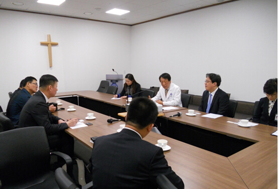 到达Severance Check-up中心负责人申相烈教授、医院VIP室长金广峻医生等接待我们,双方互相介绍查体中心和医院后对Severance Check-up中心进行参观、体验。
