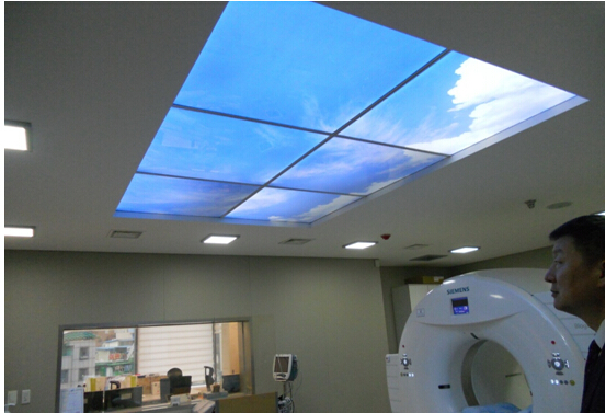 为避免CT、MRI检查病人的恐惧房间的天花板进行了独特设计