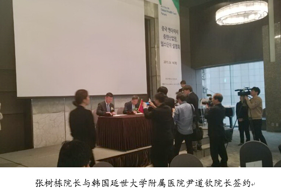 4月16日,我院再传捷报,值国际健康管理论坛开幕之际,我院张树栋院长与韩国延世大学附属医院Severance医院尹道钦院长正式签约,达成韩国延世大学附属医院烟台合作医院合作协议,成为烟台中韩自贸区建设与发展亮点项目!