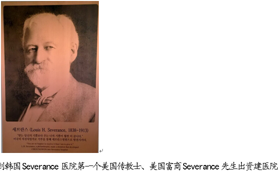 Severance医院将建筑群最早的楼宇长廊作为医院历史回顾、发展现状文化长廊。从到韩国Severance医院第一个美国传教士、美国富商Severance先生出资建医院到韩国第一个硕士医生的介绍开始,将医院发展过程、著名医生、护士介绍和医疗技术发展贯穿文化长廊。