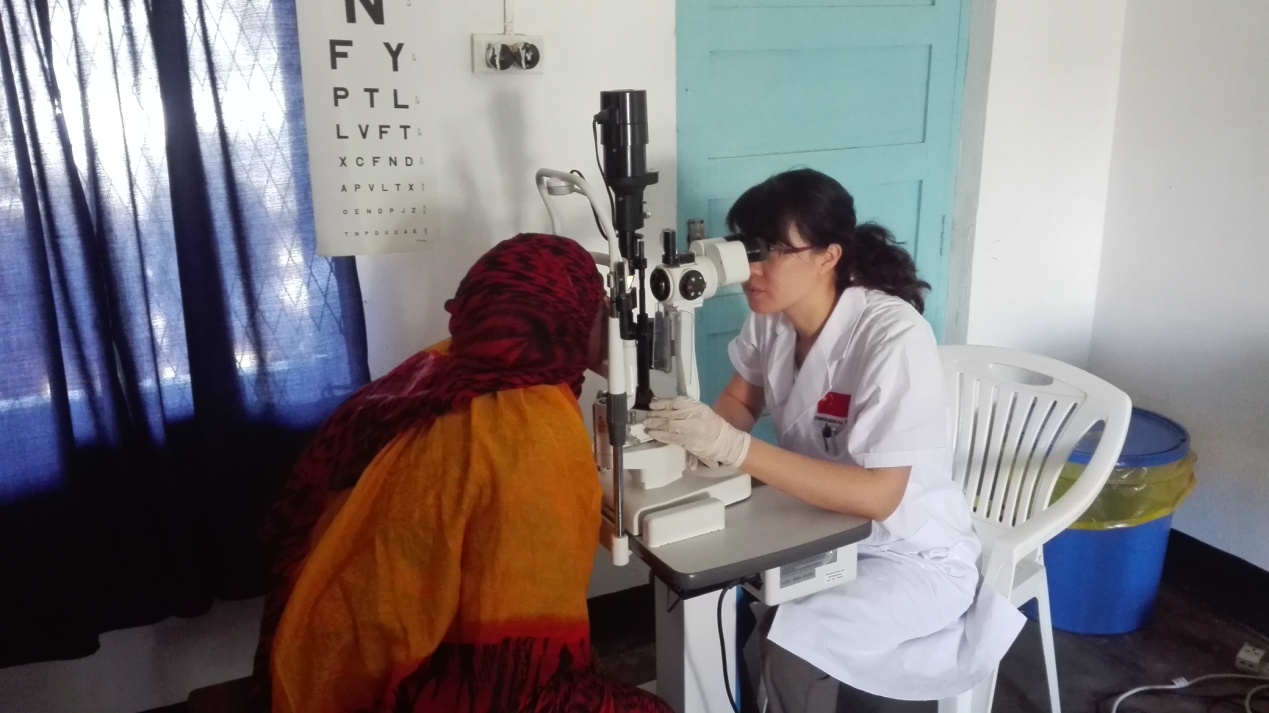 眼科,没有自己的医生,只有四名护士,相关工作全靠中国医生援助。因此,杨雪莉医生的工作自然少不了。她一周四天门诊,一天手术。如遇急诊,随时抽调。眼科门诊只有一台裂隙灯和直接眼底镜还能正常使用。因手套短缺,在这里每天只能用一副手套,除非检查过艾滋病人,否则不允许更换。上班第一天,她就检查了一位患有眼睑恶性黑色素瘤的病人,眼睑大面积溃烂,检查完、写完病历后护士才告知患者是艾滋病人,现在想想还是有点后怕。多多马地处高原,紫外线很强烈,白内障患者特别多,外伤也不少,尤其是妇女和孩子。与庞大的手术需求量相比,手术室的情况就差远了,手术室位于眼科病房尽头,只有一台简易显微镜,显微器械锈迹斑斑,很多已无法使用。幸亏我们自己带了部分手术器械,才得以缓解燃眉之急,并在关键时候派上了用场,为一位眼球破裂的孩子成功实施了手术。
