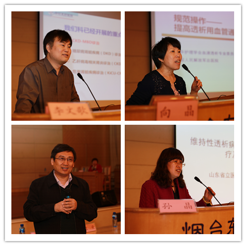 本次会议由烟台山医院血液透析室林崇亭主任主持,并以《肾性贫血的诊断与治疗》为题做学术报告,强调肾性贫血的诊断与评估的重要性。李文歌教授、向晶主任、王荣教授、孙晶教授、杨向东教授等国内著名血液净化专家,分别就尿毒症患者继发性甲状旁腺功能亢进的治疗、透析充分性的评价与方法、提高透析用血管通路护理质量、维持性透析病人重症监护的治疗预后、腹膜透析应用的最新进展等内容做了全面深入的解读,展示了世界前沿的血液净化技术,让参会者受益匪浅。