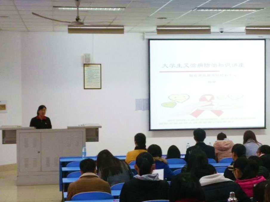 市疾控中心艾滋病预防与控制科杨珊科长向大学生讲解了艾滋病发现历史、发病机理、传播途径、危害及治疗等情况,重点介绍了流行情况、预防控制措施及青少年预防艾滋病10条核心信息等。统计显示,目前我国的艾滋病预防控制形势不容乐观,艾滋病新感、发现病例数不断上升,不少省份均有青年学生感染艾滋病的报告。加大艾滋病宣传力度,提高国民认识,尤其是在广大青少年学生中,广泛宣传、普及艾滋病常识,是非常有效的预防控制措施。讲座现场,主讲人与青年学生进行积极互动,说案例、讲故事,提问题、发奖品,现场气氛活跃,大学生参与积极。