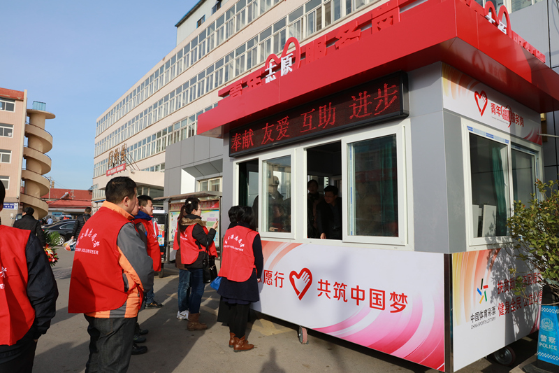 为贯彻落实全国志愿服务工作会议精神,迎接第30个“国际志愿者日”,弘扬“奉献、友爱、互助、进步”的志愿服务精神,促进志愿服务工作规范化、制度化、品牌化建设,搭建广大市民、企业员工、青年学生和医院职工奉献爱心的平台,为就诊患者提供更加便利的服务,经团市委推荐,团省委、省财政厅批准,我院“社区青年志愿服务站”于12月5号成立。团市委权益部部长、市青年志愿者协会副会长桑铖、市卫生计生团工委书记桑忠军、医院纪委书记刘韶阳、烟台大学外国语学院团委书记王鲁娟、富士康烟台科技园区团委书记金继风出席会议,并为“社区青年志愿服务站”揭牌。