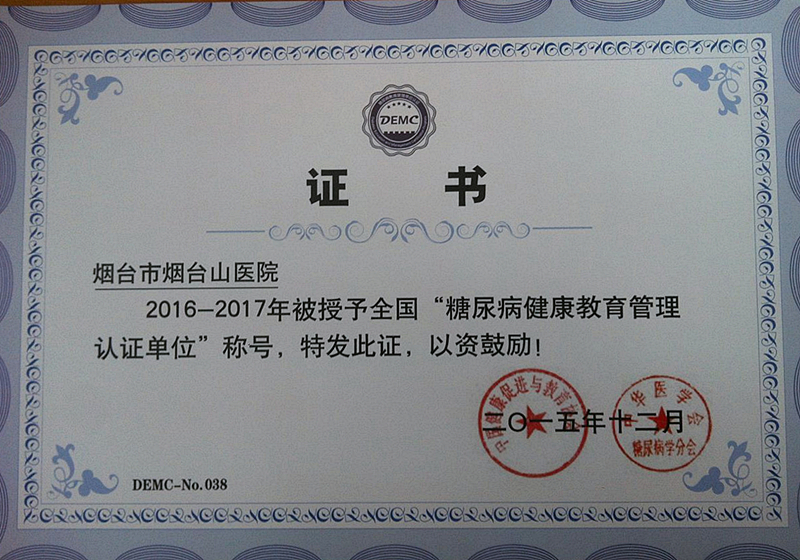 我院获得 “糖尿病健康教育管理认证单位”称号,标志着我院糖尿病教育管理工作再上新台阶。