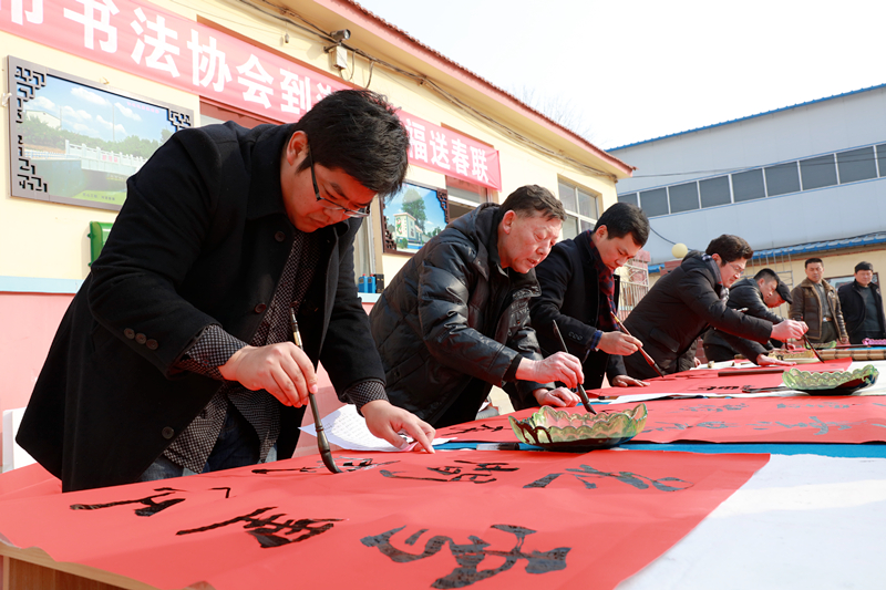 胶东大地,年味渐浓,1月28日,我院邀请烟台市书法家协会宁兰智主席一行7人到我院第一书记派驻村——蓬莱市潮水镇赵家村开展送福送春联活动,张树栋院长参加有关活动。