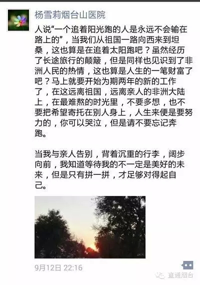 杨雪莉是烟台山医院一名眼科医生。去年8月份,随中国援助坦桑尼亚医疗队赶赴非洲,开始了为期两年的援外医疗工作。时间一晃近半年过去,前几天,记者问起杨雪莉,想家不?在非洲工作生活还好不?她的回答是……