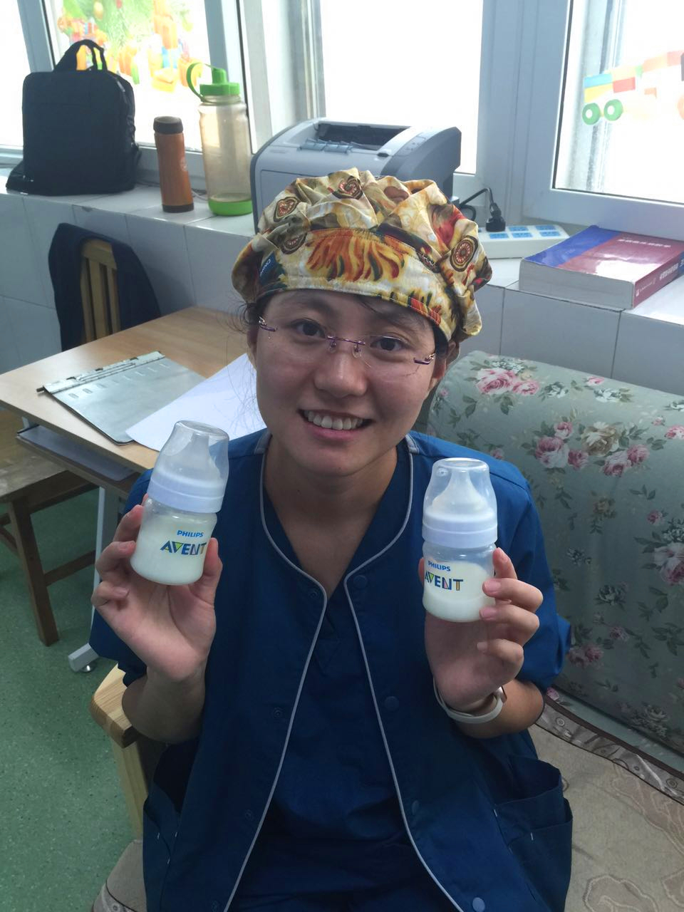 照片上三位可爱的女医生是刚休完产假上班的妈妈,但特殊的工作性质无法让她们享受国家法定的哺乳假,只能利用休息时间把奶挤出来放入冰箱保存拿回家留着第二天上班的时候喂宝宝。