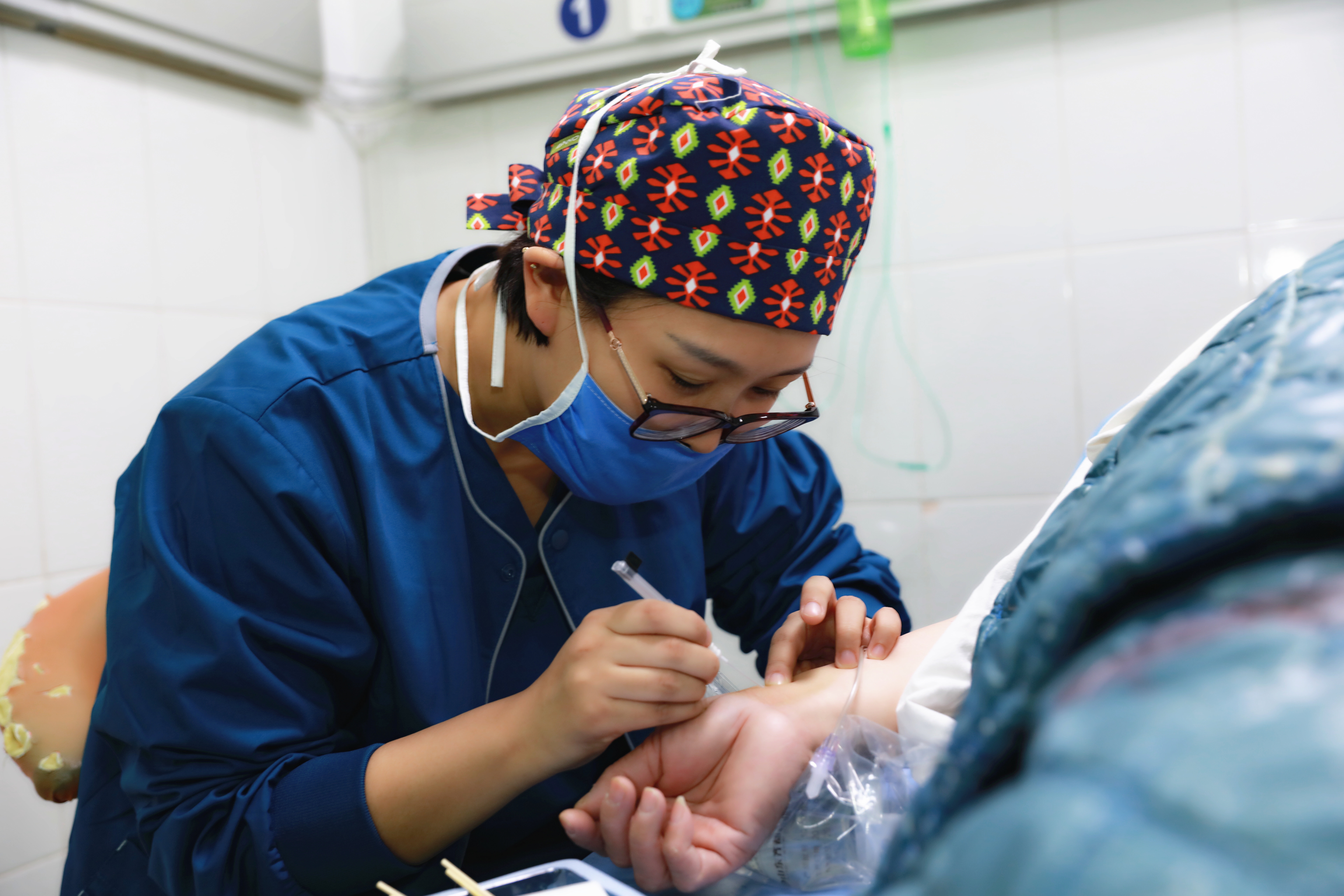 从早上7点半到现在,麻醉医生朱春锦基本没闲下来,忙活了大半天,胳膊有点儿酸,但在给病人做穿刺的时候,她还是拿出自己最标准的姿势,最好的技术。至于啥时候能够下班,朱医生说:“没点儿,不一定,只有在下班之后我的时间才属于我女儿。”