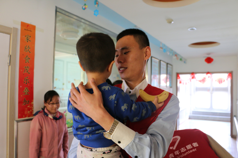 此时,我们另一路协会会员们已经进入儿童福利院区,探望这里的儿童,并为其带去爱心礼物。当这些素日里血气方刚的男护士们看到这些值得关爱的孩子时,瞬间变得柔情似水。他们不停的逗孩子笑,喂他们吃水果,不停地向工作人员询问孩子的情况,他们抱起孩子们,时而高兴的笑,时而眼含热泪……离别时,他们不舍地告别了孩子们。