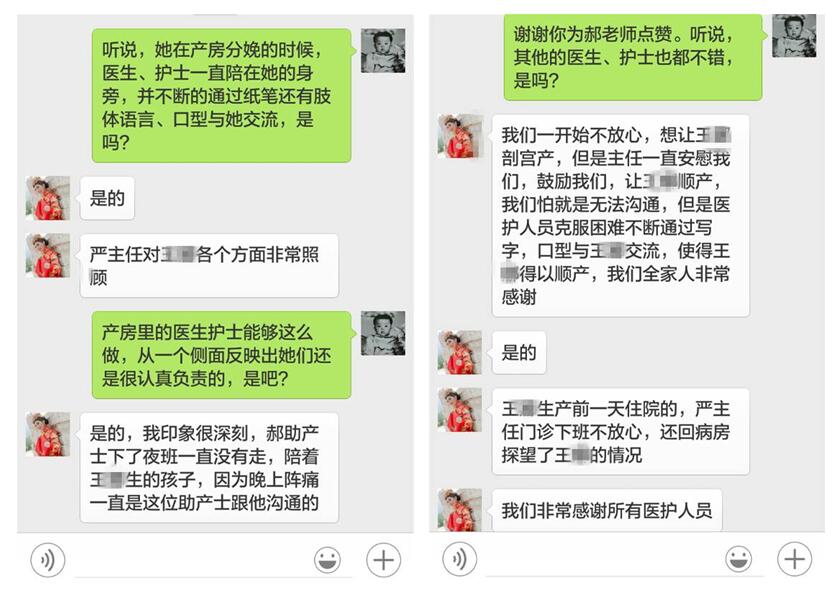 采访结束时,记者表示想看一下当天医护人员和王女士在纸上写了啥,谭彩宏护士长说,“此前,我们也帮过多位这样的聋哑产妇,这些是我们应该做的,因此,这张纸我们就没刻意保留。再说了,不论是哪位产妇来到我们产房,我们都会给予最温暖、最专业、最细致的医护服务。”