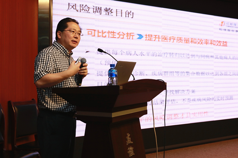 DMIAES系统创始人、成都厚立信息技术有限公司CEO李涛教授就烟台山医院的数据分析结果进行了分享,在充分肯定烟台山医院在医疗管理所取得的成绩的同时并对今后的病种管理、学科建设、费用管理和住院天数管理等方面提出了合理化建议。