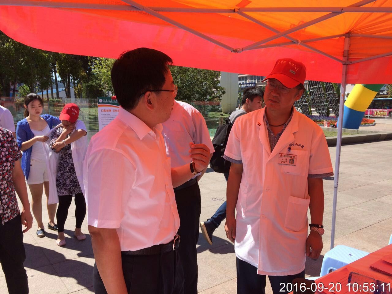 9月20日,第28届“全国爱牙日”义诊活动在烟台市文化广场隆重举行,烟台山医院口腔科王毅、王森、焉妍、田鸿旭医师等8人与市各大医院积极参与,旨在普及口腔健康与全身健康关系的知识,提高全民口腔健康水平。