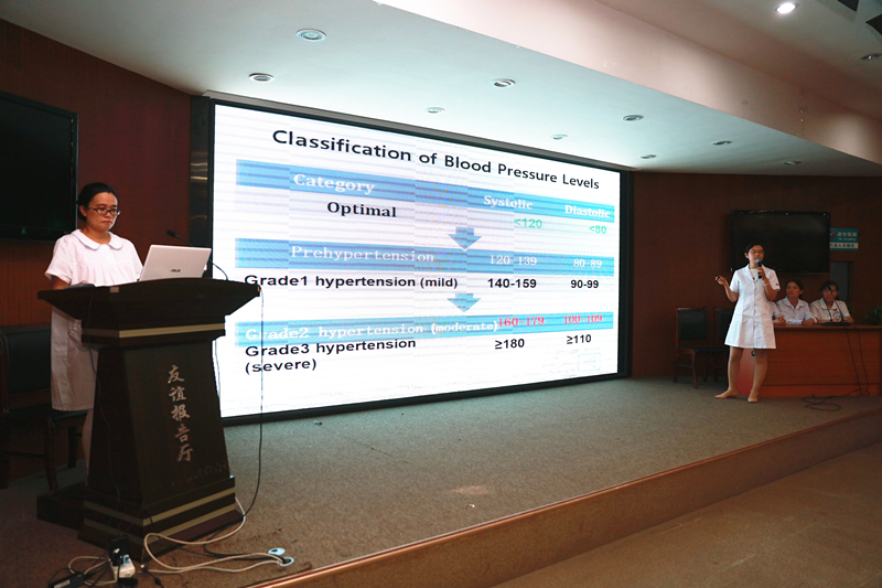 9月27日,护理部在友谊报告厅举办了以“Nursing Round of Hypertension”为主题的首次英语护理查房。护士长、带教老师、全日制本科及研究生学历的护理人员及各实习学校的队长参加了此次查房。