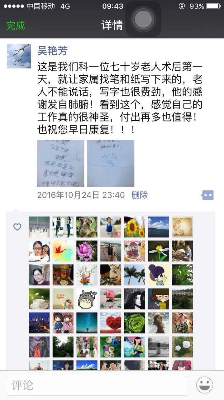 吴艳芳护士长接到这封“感谢信”后,在微信朋友圈里写了几句话,“看到这个,感觉自己的工作真的很神圣,付出再多也值得!也祝您早日康复!”很短的时间内就收到了70多个赞,不少好友在文末留言说,“有付出就有回报!”“你们用真心换真情。”“哪怕只有一位病人给予我们肯定,我们就会忘记医暴、医闹、杀医案,而且全力以赴地继续工作。”