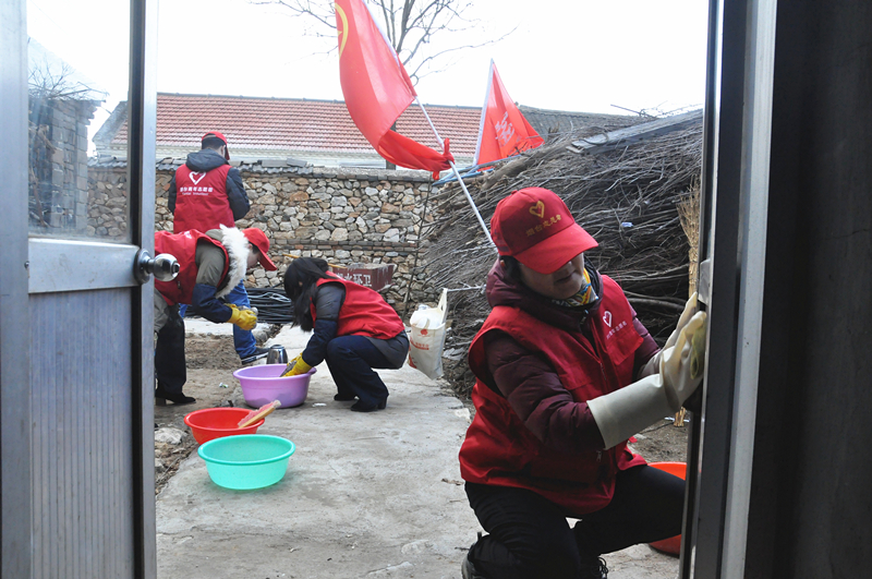 12月14日,顶着寒风,冒着小雪,我院9名“红马甲”志愿者,走进了蓬莱市潮水镇赵家村,为村里三位低保户义务查体,维修破损门窗,打扫室内外卫生,迎接新年的到来。