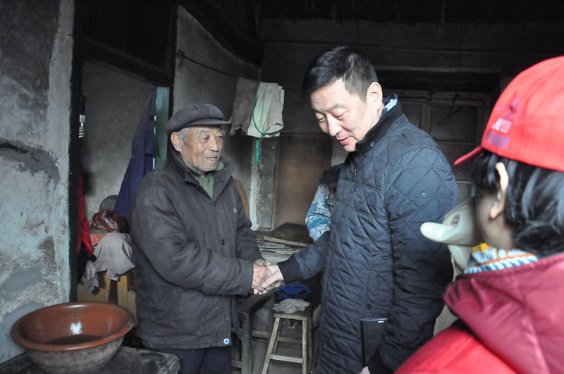 在第一位低保户79岁的赵利训家里,我院驻村“第一书记”、办公室主任潘峰与老人对接后,志愿者们便忙碌起来。
