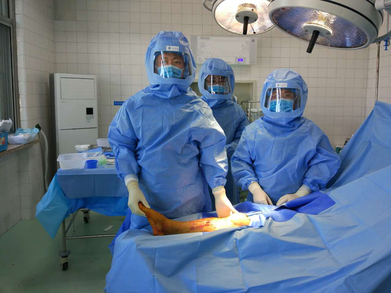这台手术引起了南院骨科和南院手术室的高度重视。手术室接到通知后,积极进行了术前准备,备好“太空”防护服,以便进行更好的防护。术前,手术室护士对患者进行了术前访视,与其交流沟通,告知手术流程以及注意事项,缓解他的紧张情绪。