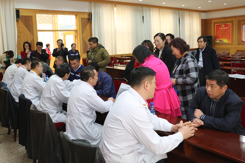 义诊现场,很多矿工拿着片子来找专家咨询,很多附近的村民也来到现场找专家检查。71岁的张桂芬老人腰腿疼了很多年,除了去镇上的卫生院,她从没去大医院检查过。烟台山医院南院骨科副主任医师孙冰给老人做了详细检查后提出了治疗意见,并叮嘱她注意日常生活饮食。张桂芬老人高兴地说,“这大医院的大夫就是好,不光上门看病,说话还贴心!”