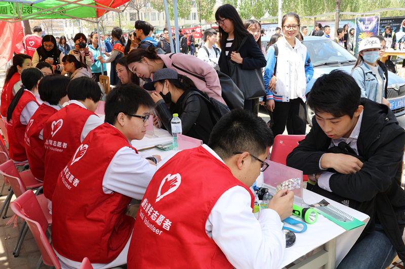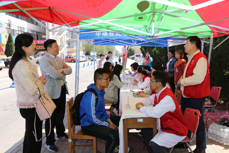 烟台山医院行政第一党支部志愿者张国瑞、张渝宁,皮肤科志愿者马海丽,妇科志愿者张玥,骨科志愿者周庆生,外科志愿者史建华,消化内科志愿者李倩倩,神经内科志愿者田升军,耳鼻喉科志愿者王晓勇等9位志愿者来到烟台大学,为这里的师生健康义诊。