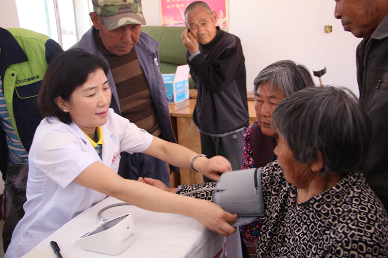 或许与当地的饮食习惯有关,在参与义诊村民中,80%患有高血压,个别村民高压甚至超过了200。尽管大多数村民都知道自己患有高血压,但服药十分不规律。义诊现场,烟台山医院高血压专科门诊主任范金英根据每名患者的情况,进行服药及相关健康指导。“在血压得到有效控制前,患者需要每天定时测量血压,随时进行观测,直至将血压控制在正常范围内。”此外,范金英提醒村民,很多心脑血管疾病都是由清晨高血压引起的,需要特别注意。