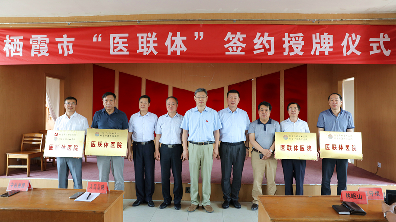 6月27日,烟台市烟台山医院在栖霞举行医联体签约授牌仪式,栖霞市人民医院、栖霞市中医医院、烟台桃村中心医院、栖霞市妇幼保健计划生育服务中心等4家医疗机构成为烟台市烟台山医院的医联体合作医院。栖霞市人民政府副市长刘明连,烟台市烟台山医院院长张树栋、副院长刘文波,烟台市卫计委医政医管科科长张葵阳等领导出席活动。
