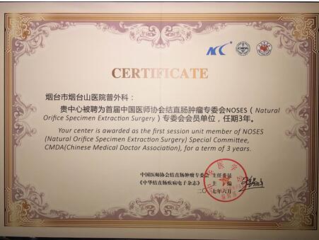 我院普外科在科主任万勇的带领下自2012年开展腹腔镜结直肠手术,随着技术不断提高,自2015年开始开展NOSES手术,并多次派人参加全国会议学习交流,聘请上海长海医院肛肠外科著名专家傅传刚教授来院指导,成为全国为数不多成功开展NOSES手术的医院。今年由中国医学科学院肿瘤医院王锡山院长牵头成立中国医师协会结直肠肿瘤专委会NOSES专委会,通过对我院NOSES手术病历及视频的严格审核,有幸成为会员单位,宫红彦副主任医师被聘为首届NOSES联盟会员,并参与第一版结直肠经自然腔道取标本手术(NOSES)专家共识的讨论编写。