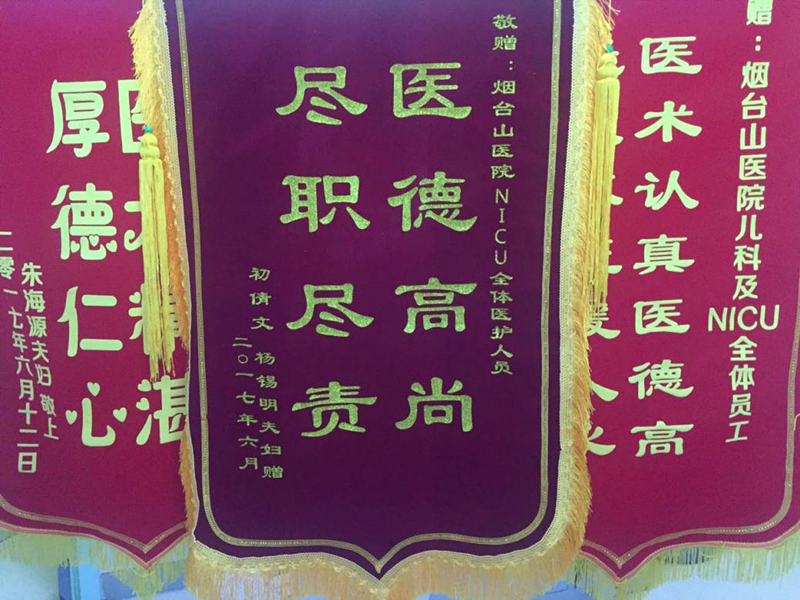 2017年的6月,我们成功救治了一批又一批的急危重症,且不说在我们的悉心呵护下茁壮成长的不足一公斤的早产宝宝们,我们为合并胆红素脑病的黄疸宝宝成功实施了换血,我们还成功挽救了合并急性肾功能衰竭等多脏器损害的梅毒宝宝的生命,我们为合并严重感染的气胸宝宝保驾护航……我们治愈了越来越多的上呼吸机的呼衰宝宝,我们用电子支气管镜为越来越多的胎粪吸入宝宝实施了灌洗,避免了呼吸机的应用,减少了并发症的发生,缩短了他们的住院时间。正所谓有付出总有回报,在这即将逝去的6月,我们先后收到了患儿家长送来的三面锦旗,对我们来说,这不仅仅是对我们全体医务人员工作的最大信任,更是对我们实施人文关怀以来对我们科室满意度的最大肯定。