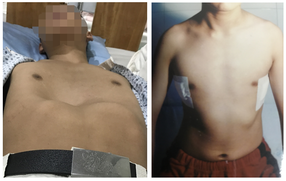 烟台栖霞15岁的少年小郭有一长达四年的难言之隐,前胸部有个大的凹陷,而且日益加重,小郭因此被同学嘲笑,焦虑而自卑。近日,正值暑假,小郭在妈妈的陪伴下来到烟台山医院,找到费秀渠主任,经检查,确诊为重度弥漫性漏斗胸、重度胸廓畸形。