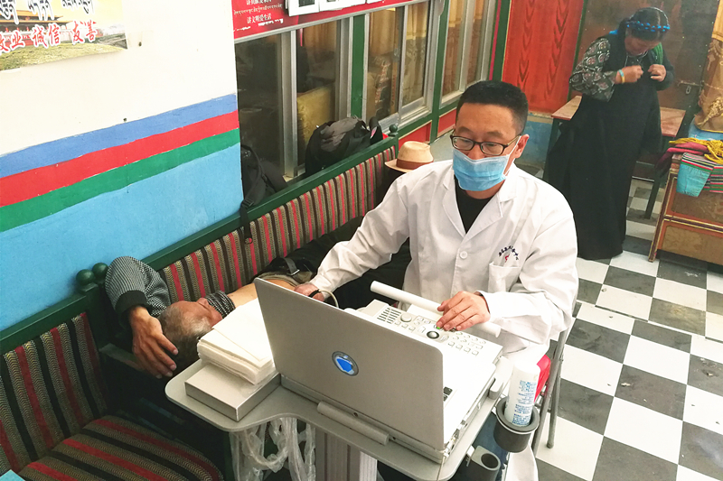 每天,我们都会带着两台超声机下乡筛查,每个村,我们都要为两三百位村民筛查。这里的村民大都不会汉语,只会藏语,我们就用进藏后现学的藏语跟他们交流,毕竟语言不通、口音有别,我们跟村民交流起来还是有一定困难的,但我们都会认真、仔细地与他们沟通,因为医学上的活儿容不得半点马虎,事关群众健康的事儿绝对不能“差不多就算了”。