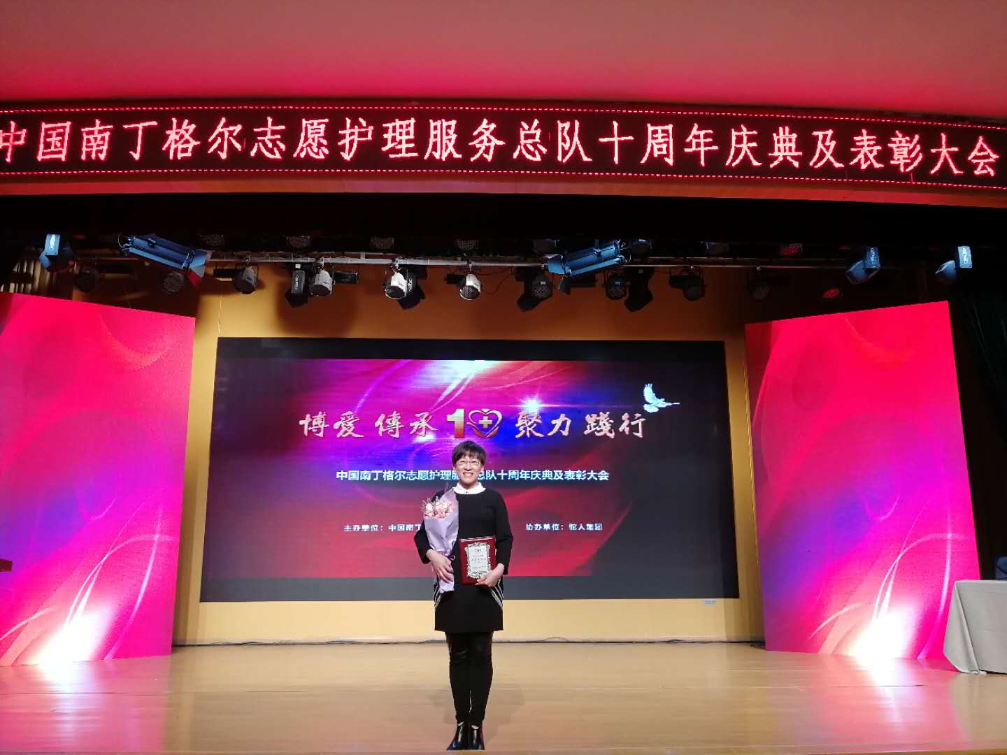 11月17日,中国南丁格尔志愿护理服务总队十周年庆典及表彰大会在中国医学博物馆隆重举行。会上,我院创伤二科护士长任栋慧被授予“优秀志愿者”荣誉称号。