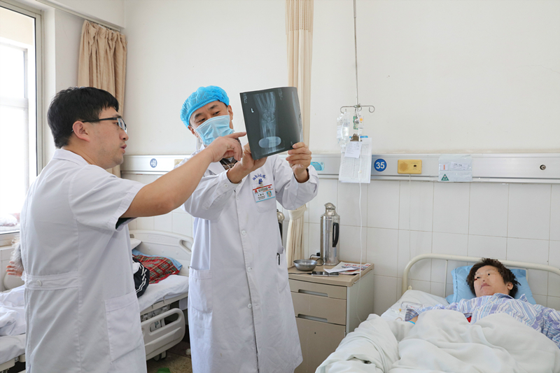 烟台山医院手外科孙明老主任和于胜军主任为患者进行手法复位