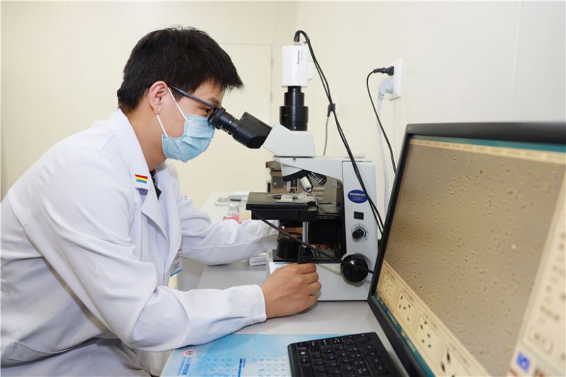 精液常规检查常用于评估男性生育能力,医生正在对患者精液进行初筛。