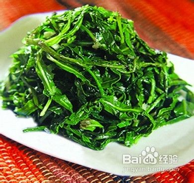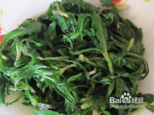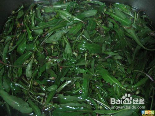2【凉拌】:洗净的蒲公英用沸水焯1分钟,沥出,用冷水冲一下。佐以辣椒油、味精、盐、香油、醋、蒜泥等,也可根据自己口味拌成风味各异的小菜。