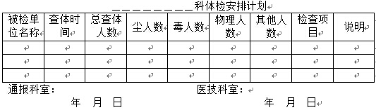 8.确定的体检计划,同时以书面形式向相关医技科室、车辆安排部门通报。