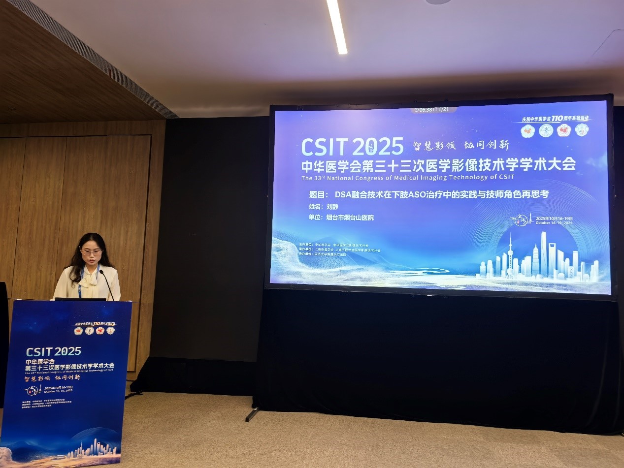 近日,中华医学会第三十三次全国医学影像技术学学术大会召开。烟台山医院介入手术室主管技师刘静凭借扎实的专业能力与人文素养,受邀发言并斩获影像技师微故事大赛一等奖佳绩。